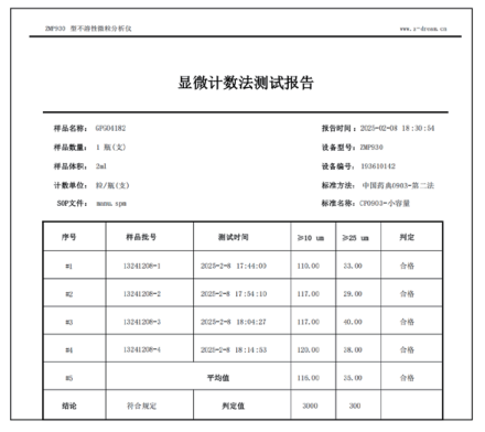 對光阻法初檢不合格的樣品,使用顯微計數(shù)法不溶性微粒儀ZMP930復(fù)測,并以顯微計數(shù)結(jié)果作為最終結(jié)論。